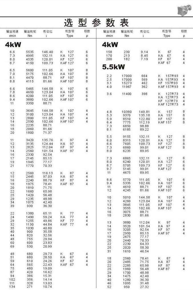選型參數表4kW(續)和5.5kW
