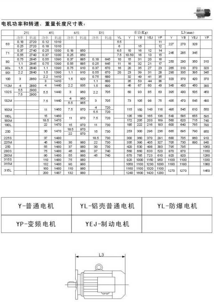 電機功率和轉(zhuǎn)速.重量長度尺寸表電機代號