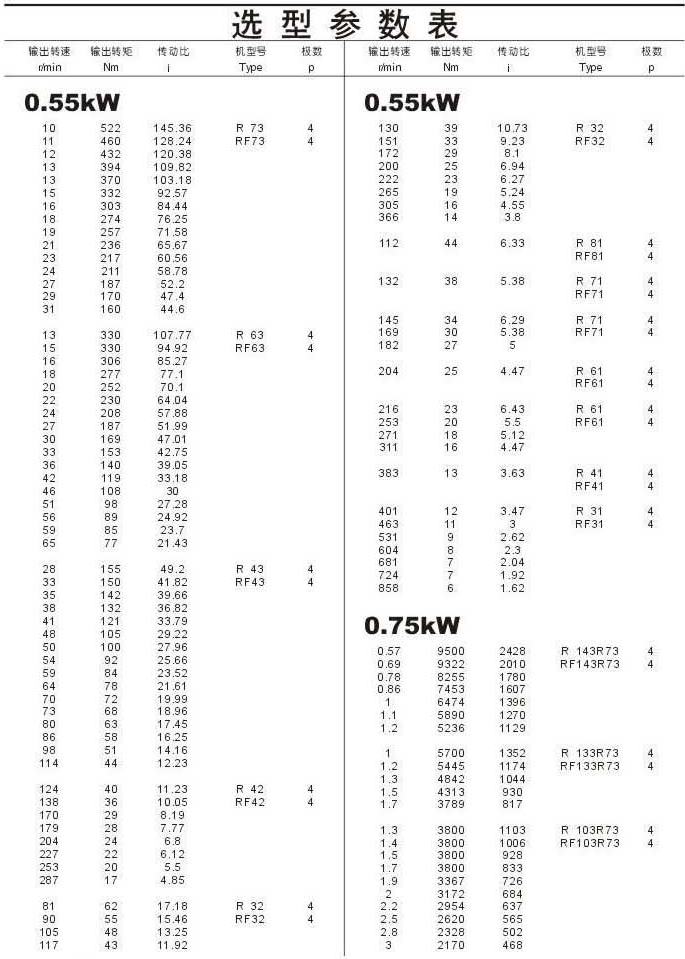選型參數(shù)表0.55kW(續(xù)),0.75kW